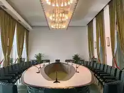 Outside, there's a spacious garden in front of the palace, a large, curved lawn, a semicircular pond, and a balcony on the upper floor offering a panoramic view of the city. If you visit in the morning or late afternoon, the natural light is excellent, making for beautiful photos. There's even a view of a model tank at the entrance, a historical reminder of the end of the Vietnam War.