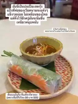 This restaurant is quite popular among tourists. The hotel we stayed at recommended it. Prices are a bit higher than usual, but it's still affordable. The Vietnamese food here is delicious and unlike anything you'd find in Thai restaurants. The ingredients are incredibly fresh. The sauce here is distinctly different from other places. Since Vietnamese food is typically made with rice flour and vegetables, the sauce helps differentiate each dish and gives each restaurant its own unique identity. I've been to many grilled shrimp restaurants and haven't found any that make the sauce as good as this one.