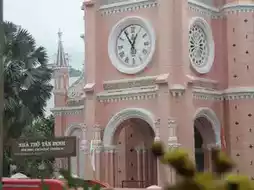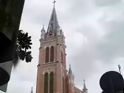 Just a short walk from the Thai pancake shop, we arrived at Cộng Cà Phê at the beginning of the alley. This shop has a famous coconut coffee (or maybe I followed it from TikTok? 🤣). It's a bit too sweet, so it's probably still a good place to chill in the air conditioning and enjoy the church view, since it's right across from the pink Tan Dinh Church. It's a two-for-one experience!
