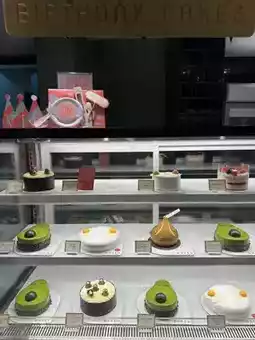The dessert cabinet is filled with all sorts of cute little desserts, making it hard to choose.