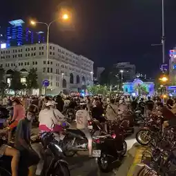 Since Vietnam has declared mask-wearing no longer mandatory, people are very relaxed. On a Saturday night like this, people at Ho Chi Minh Square are out strolling, meeting friends, and socializing.