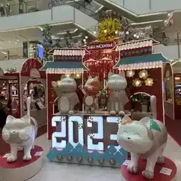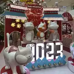 And the Saigon Centre, a major shopping mall in the heart of Ho Chi Minh City, is beautifully decorated for the New Year, featuring a red cat theme. It's a great place to stroll, shop, and take photos.