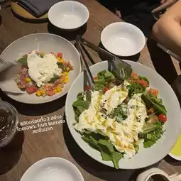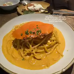 The food is very delicious. I want to scream. It's good from the salad plate, especially the fruit burrata. It goes very well together. Eating it is very refreshing. The pizza dough is very delicious, soft and not too thick. As for the No.1 crab spaghetti, it smells very good. Eat it with chili oil. It's very delicious. And the price of everything is very cute.