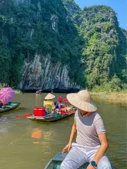 Arriving at Lu Long Bay in Ninh Binh, it is really peaceful and comfortable. Compared to Ha Long Bay where there are many stairs to climb, it is less strenuous and stressful. However, it is a two-hour boat ride and there is no shelter (there are long-handled umbrellas on the boat), so it is recommended to prepare a hat, sunscreen and water. You can dock in the middle and stretch your legs. Most of the people rowing the boat are older sisters and aunts with great physical strength. They have great boat-controlling skills and can make turns as they please and stop wherever they want. If your finances allow, give them a little tip as an encouragement! #Wonders of Nature #Travel Inspiration