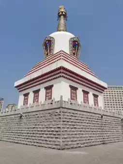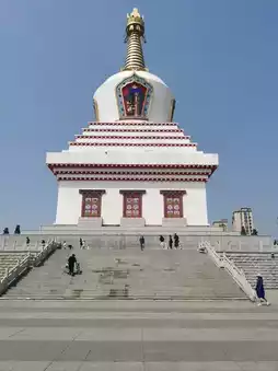 Baorhan Pagoda is located in Yuquan Park, Hohhot, Inner Mongolia, about 300 meters west of the intersection of Ordos Street and Danan Street (Nanchafang) on the south side of the road. It was built on May 26, 2006. Baorhan Pagoda is in the style of the "Bodhi Pagoda" among the eight great pagodas. The pagoda is decorated with flame-shaped niches. The pagoda is composed of a base, thirteen heavens, a disc, and a top. The base is the transition between the pagoda and the body of the pagoda, and the four sides are decorated with Buddha eyes. The eyes of the Buddha are always watching everything in the world. The thirteen heavens, or "Xianglun," are circular planes, conical in shape, with a small top and a large bottom, representing the layers of the "heavens." A disc, or "canopy," is covered on top of the thirteen heavens, with tassels hanging down. The pagoda is topped with the sun, moon, and flames. This unique design not only reflects the cultural connotation of Buddhism but also leaves a deep impression on people.