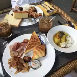 The bread for breakfast was delicious. Especially the croissants and coconut bread with coffee!! They were delicious. They upgraded my room for free, so I had a great stay in a nice room, and I also got a free massage in the basement.