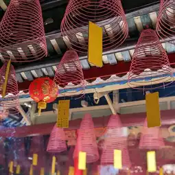 The vivid colors and glitteringly decorated architecture make this a photogenic spot. The "spiral incense sticks" hanging from the ceiling are also very distinctive.