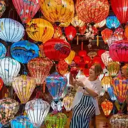 📍 Find some street food + take photos with the lantern shop ‘Hoi An Night Market’