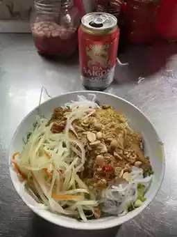 I don't know what it is called Mi Quang with beer 🍻 on the left. It's authentic enough