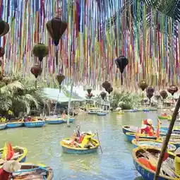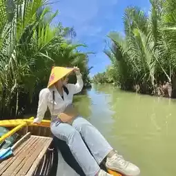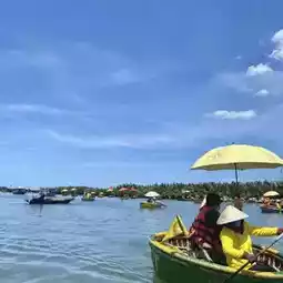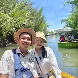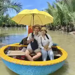 ⛱️Another activity that you shouldn't miss when visiting Hoi An is taking a bamboo basket boat to see nature. The boats are round and look like a basket, woven from bamboo, strong and can support weight.