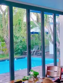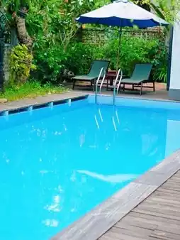 it has a fairly large pool, clean rooms, and pretty interiors❤️