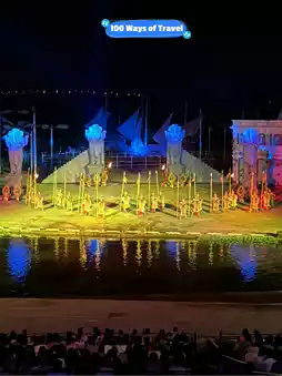 The highlight of Hoi An Memories Land is this award winning dance performance. It shows the heritage cultural of Vietnam through folk dance with modern technology and choreography on a large scale. There are many performances for this show and it has a total of 5 acts. Follow me on my VIP journey whereby I get the highest deck to have a better aerial view of the stage, ceiling fans for better air circulation and fruits and water for replenishment. I also had a designated entrance and got to skip the queue for priority seating. I do recommend watching this show for at least one time so you can splurge on a VIP ticket for this time.