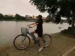 There are hotels around the Thu Bon River, so there were some tourists riding bikes (^^)