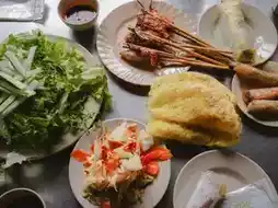 The staff will show you how to eat it. It makes our local nem nuong seem like Shenzhen's version. Besides the different props like grilled pork, fried spring rolls, and crispy Vietnamese pancakes, the rice paper here is not like ours. Rolling it up and eating it can be quite a challenge, with each bite being quite large.