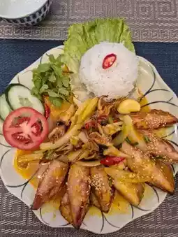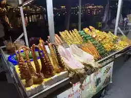 There are simple chairs and tables along the river, and there are shops where you can eat food stalls, which adds to the atmosphere.
