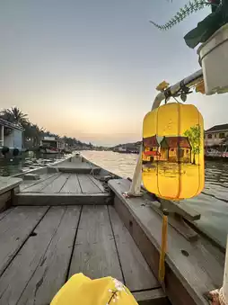 ✅ There are boats for tourists to try to ride on the Thu Bon River.