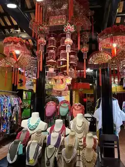 There’s grandma laying out silk scarves on the sidewalk.