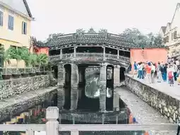 Landmark: Japanese Bridge is a covered bridge, 18 meters long and 3 meters wide, spanning the Thu Bon River. It was built by the Japanese before being renovated several times. The roof is decorated with beautifully carved sculptures.