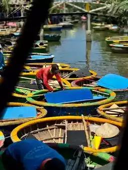 These round bamboo boats are actually a clever invention from the Vietnam War era! Back then, to avoid taxes, fishermen made their boats in the shape of a basket.
