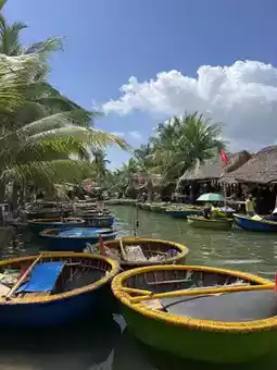 The people there are super enthusiastic and welcoming. You can experience sitting on a bamboo-woven round boat with the locals. The local will sail the boat for you and even make the boat circling around, creating a fun atmosphere. They are so friendly and make me laugh so much because of all the fun time.