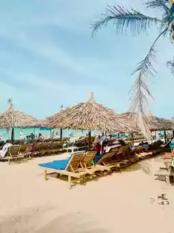 This is An Bang Beach in Hoi An, near Da Nang, Vietnam, a truly relaxing place even in Southeast Asia. It's filled with sunshine and free sunbeds. It was a truly wonderful place to enjoy delicious food, a swim, and a tan. Even though the weather was hot, it was nice to be able to fully enjoy the ocean. #DaNangTravel #VietnamTravel #HoiAnTravel #AnBangBeach