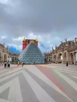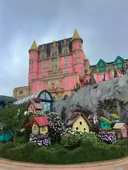 • Upstairs, there's a flower garden, a cafe, and a replica of a European village. 🏰 Stroll around and enjoy the moment.