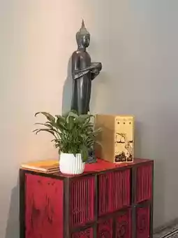 Vintage props, dark wood tones, and jazz/soul music create a calm and sophisticated atmosphere.