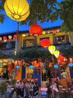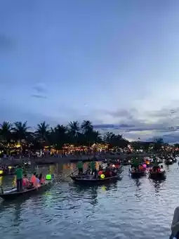 The highlight was a boat trip on the Hoi An River as the sun was setting. At night, the small boats gently floated, releasing lanterns on the water's surface. It felt like a dream, a quiet spot, with the lights reflecting off the water, the sounds of boats, and the people walking along the shore. And the cool weather is so chill.