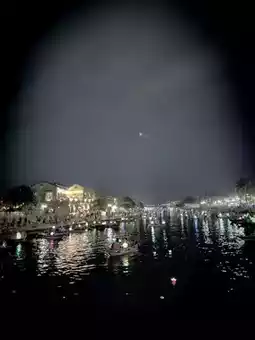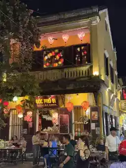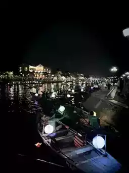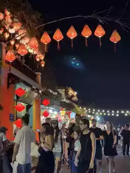 Lanterns illuminate the streets, ablaze with color. The aromas of riverside food stalls, the cries of artisans, and the laughter of travelers combine to create a vibrant spectacle of life. Boats sway on the Thu Bon River, and floating lanterns illuminate the water, adding to the enchanting nightscape.