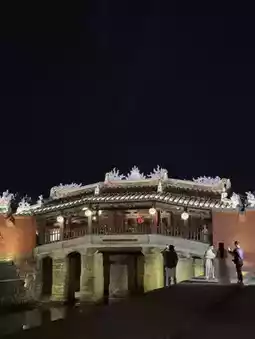 Mostly constructed of wood, the Chùa Cầu Bridge features a tiled roof and intricate carvings. Stone statues of monkeys and dogs guard each end, symbolizing the passage of time. A small shrine dedicated to the North Pole Xuantian God stands in the center of the bridge, symbolizing the protection of the bridge and passersby.