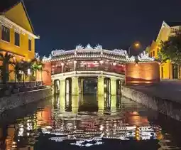 Hoi An Ancient Town in Vietnam, located near Da Nang, is a quaint and well-preserved ancient trading port and commercial town. The architecture, culture, and cuisine throughout the town are infused with French, Chinese, and Japanese elements, showcasing cultural diversity that attracts visitors from around the world. There is also a significant Chinese community living here, with several Chinese clan halls on the streets, including Guangzhao, Fujian, and Zhonghua clan halls. The Guangdong clan halls seen in places like Nanning, Yulin, and Baise in Guangxi have architectural styles very similar to the Guangzhao clan hall in Hoi An. At night, the ancient bridge over the Hoi An River, reflected in the water under the glow of lanterns, appears to dance gracefully on the water.