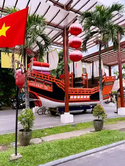 • There are spots that reflect the historical connection with Japan, such as the "Japanese Covered Bridge (Chùa Cầu)," a reminder of the trade relations during the Red Seal Ship era. As seen in the third photo, there was a replica of a Red Seal Ship! I’m not sure if it’s the actual size, but I wondered if people in the past traded using ships of this size.