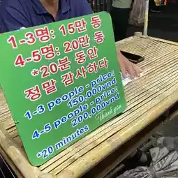 It's cheap at 150,000 VND (7,500 KRW) for up to 3 people and 200,000 VND (10,000 KRW) for up to 5 people! (They say you can't bargain because it's a fixed price!😂)