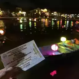 It was a romantic experience to ride a boat with two bright lanterns and float down the Hoi An River for about 20 minutes!