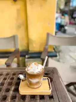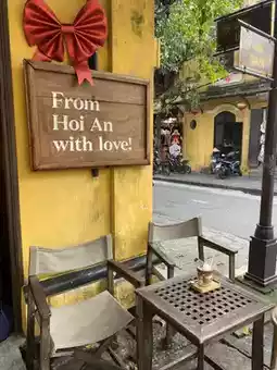 Was strolling along the streets of Hoi An ancient town and this café at the corner of the street caught our eyes! The café is rustic and old school, love the pink flowers and the greeneries at the store front, making it so Instagrammable and pretty! Lovely and perfect place for shutterbugs and coffee lovers! Love the signage of ‘From Hoi An With Love’, cute photo spot! The café has a lot of seating areas for both levels, love the seatings facing the street at the store front. The ambiance was rather chill and cozy, could easily spend the entire afternoon here, chilling and people watching. We ordered their coconut coffee which was pretty good and was such a thirst-quencher for a summer afternoon! Harmonious blend of coconut and coffee made the coffee great!