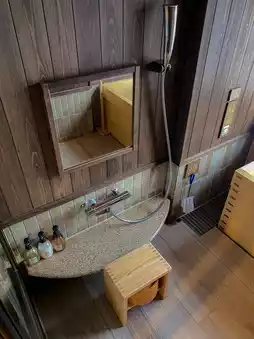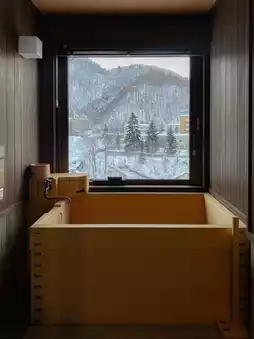It's a full bath for 1 person, or maybe 2 people, but there's a bath in front of a picture-framed window, so you can heal while taking a hot spring bath.🖼️