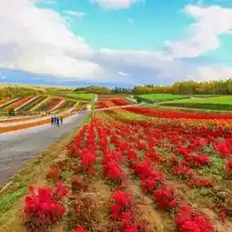 Hokkaido's Shikisai-no-Oka is undoubtedly one of the most iconic flower viewing spots. Located in Biei, Shikisai-no-Oka deliberately plants dozens of different colors of seasonal flowers. During the flowering season, the entire field is like a palette on the earth, painting a colorful scene among the undulating hills. Especially during the lavender season in July and August, the added romantic purple hues make it the most worthwhile time to visit Shikisai-no-Oka.