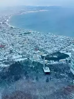 Arrive in Hakodate at noon and head straight for Hachiman Slope, where the road ends at the sea. Then follow the mountain road uphill to the Hakodate Mountain cable car station🚠