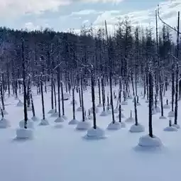 ⛄☃️⛄Like a fairytale scene, the 'Shirogane Blue Pond' 🌨️🌨️🌨️🌨️ is one of the most famous tourist attractions in the Biei area of Hokkaido. After winter sets in, the pristine white snow accumulates on the frozen lake surface ❄️❄️❄️❄️. The ice-covered lake is already stunning ❤️❤️❤️❤️❤️. It is a mysterious and beautiful sight 🏔️🏔️🏔️. Hokkaido is the place to see the most beautiful snowy landscapes.⛄☃️⛄☃️
