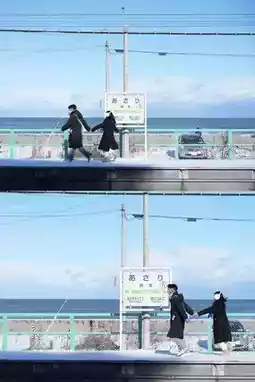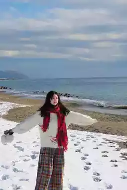 Hokkaido is very suitable for wearing cool colors, black coat + blue scarf, a proper love letter feel