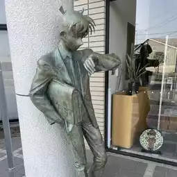 In front of the library, there is a bronze statue of Kudo Shinichi