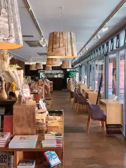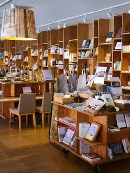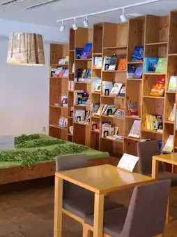 The books are well-selected, and the atmosphere is warm with the warmth of wood.