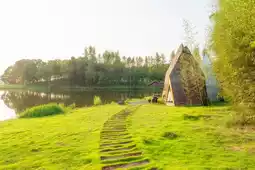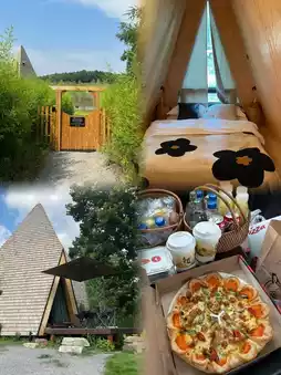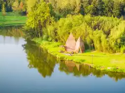 Outdoor Camping: Whether it's the spacious area in front of the wooden house or the soft grass by the lake, both are perfect for setting up tents, lighting bonfires, and enjoying barbecue delicacies.