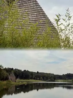 - Material: Made of black carbonized wood, blending into the natural environment.
