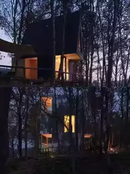 Highly recommend the “Fairy House”! Nordic-style triangular wooden cabin, open the door to your private lawn + bonfire area~ The round bed is super soft, air conditioning + fireplace are very thoughtful, plus Dyson hairdryer, portable speaker, and books to browse at will! At night, lie on the sofa watching the lake view, the sound of wind, insects, and distant bonfire blend together, so healing you’ll want to live here forever~