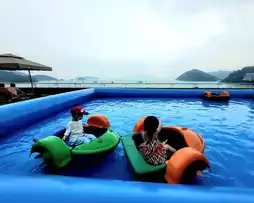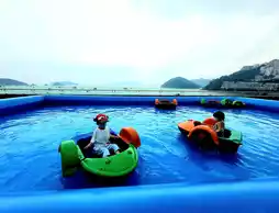 Family Good Place] Surrounded by Bubbles ~ Seaside Hand Rocking Boat + Booth Games