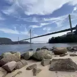 It sits under Ting Kau Bridge and looks out to Tsing Yi. There are metered carpark along the road, or you could take bus route 234b that stops at Ting Kau Village. On far left (facing the sea) of the beach sits the changing/ showering/ toilets facilities and the children playground is to the right.