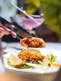 Very tasty and surprising 🔥! I usually eat crab cake, but I didn't think that the salmon is crushed and added with red pepper and other spices to make salmon cake. It's so delicious!