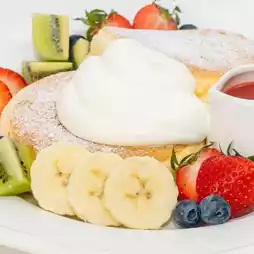 Served with fruits, ice cream, and various specially prepared sauces, in addition to the original pancakes with cream and maple syrup,