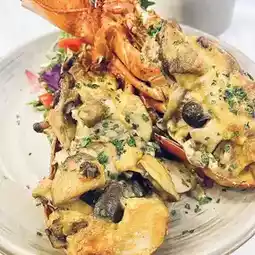 Cut the lobster🦞 into pieces and add cheese, cream and mushroom pieces to cook together